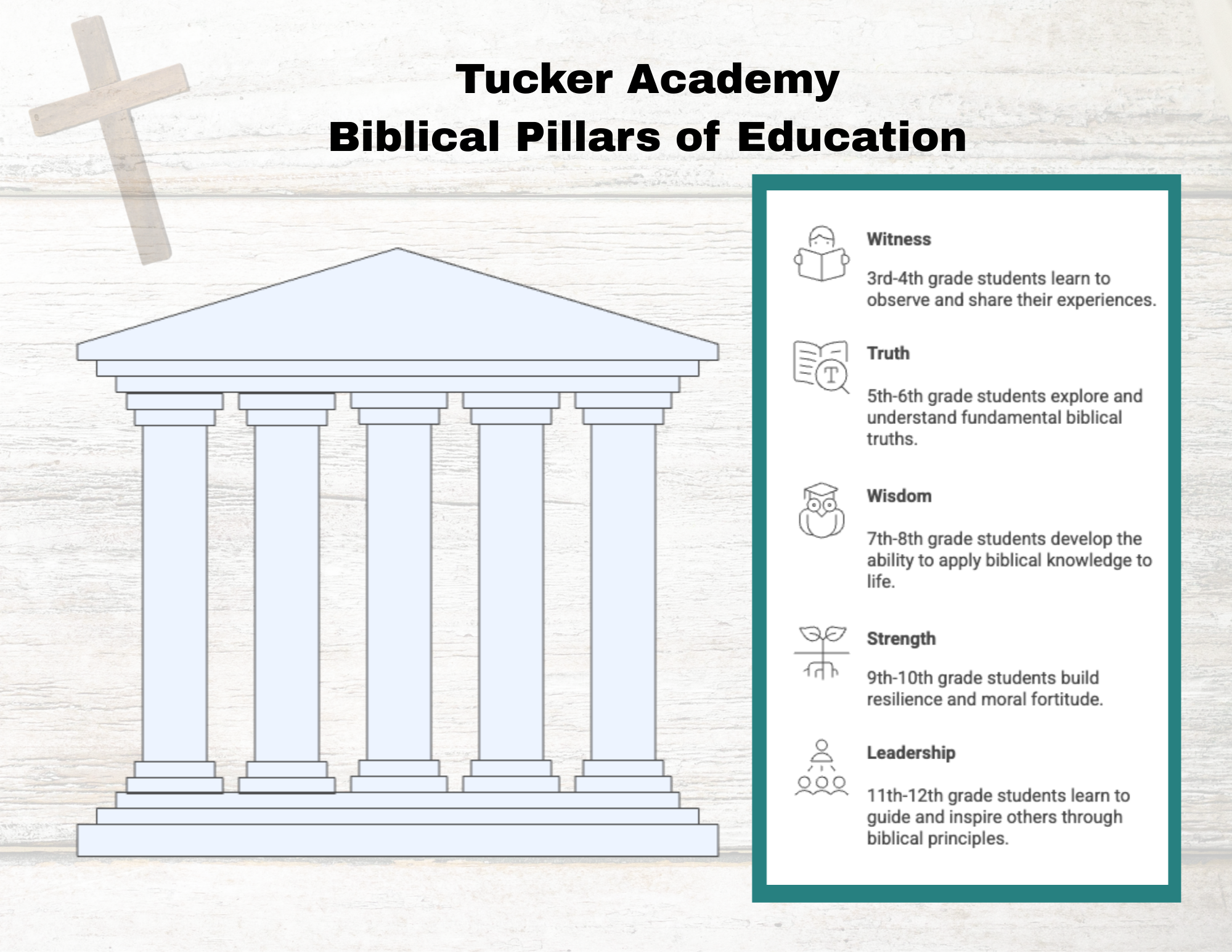 At Tucker Academy, education is more than academics; it’s discipleship. Through our Biblical Pillars Program, we purposefully give students the time, guidance, and formation they need to grow into Christ-centered leaders prepared to shine in a broken world.